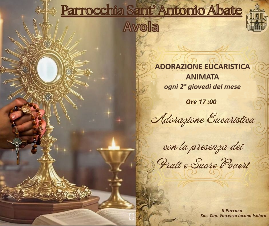 - Adorazione animata presso la Chiesa di S. Antonio Abate ad Avola ogni 2° giovedì del mese